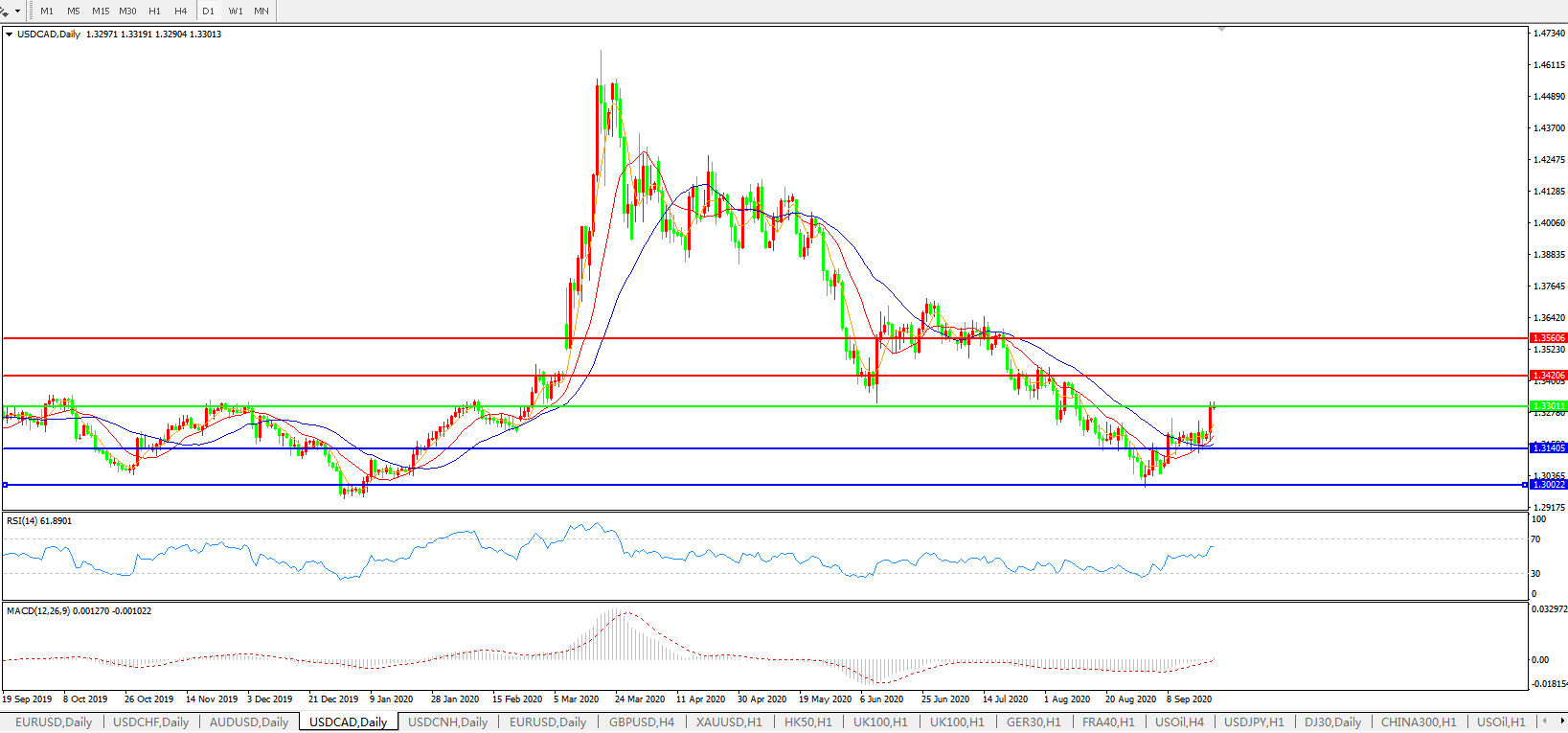交易策略:在1.3300之上,看涨,目标价位为1.3420、1.3560