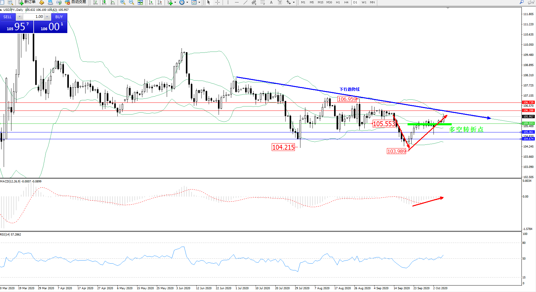 多空转折点:105.553