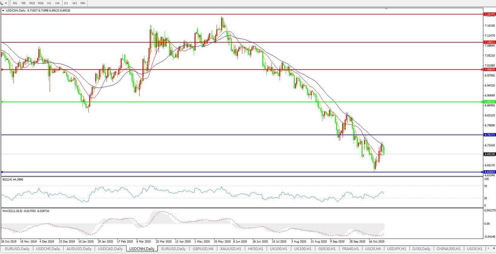 美元兑人民币USDCNH 日线图: