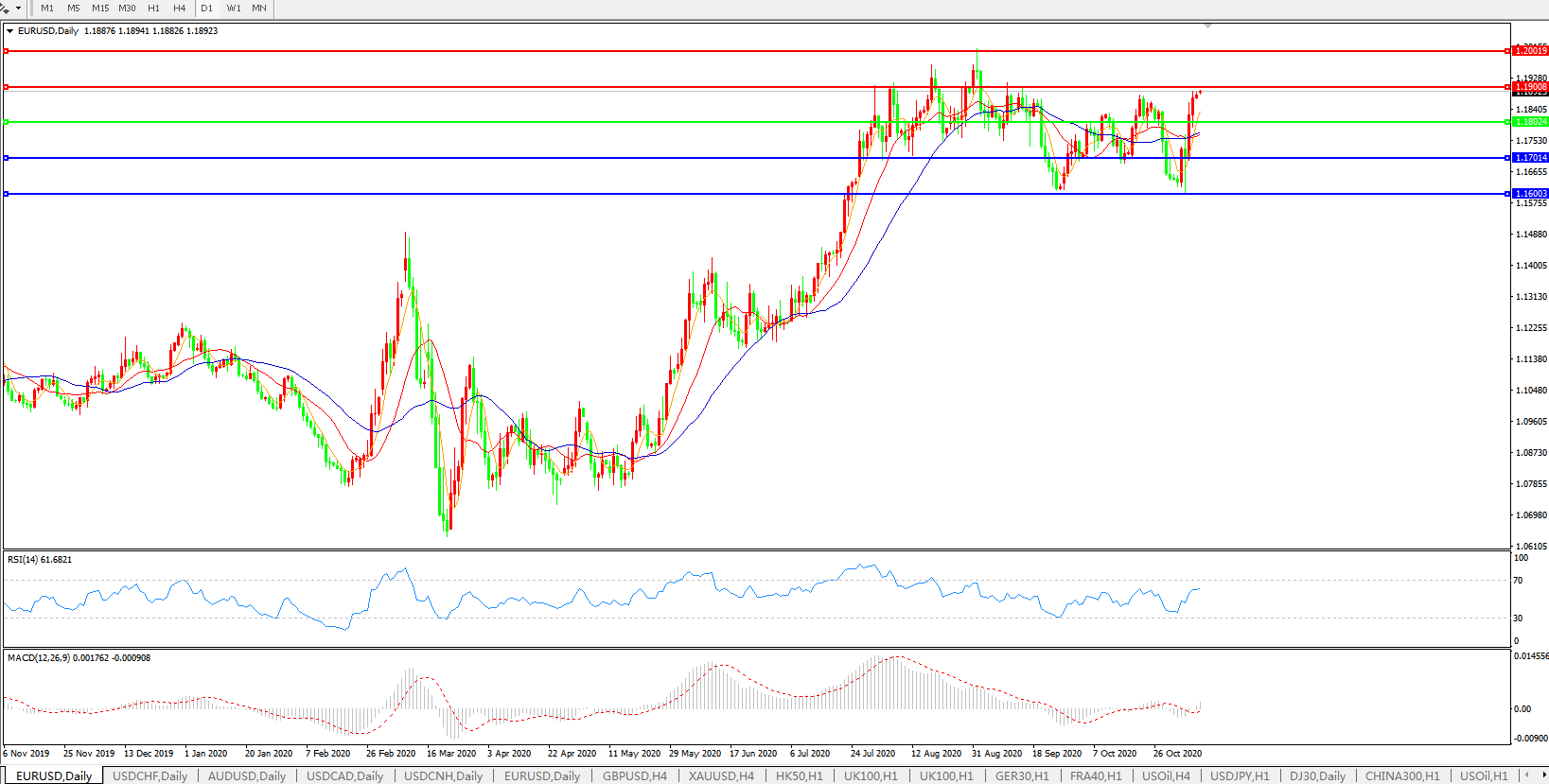 欧元兑美元EURUSD   日线图: