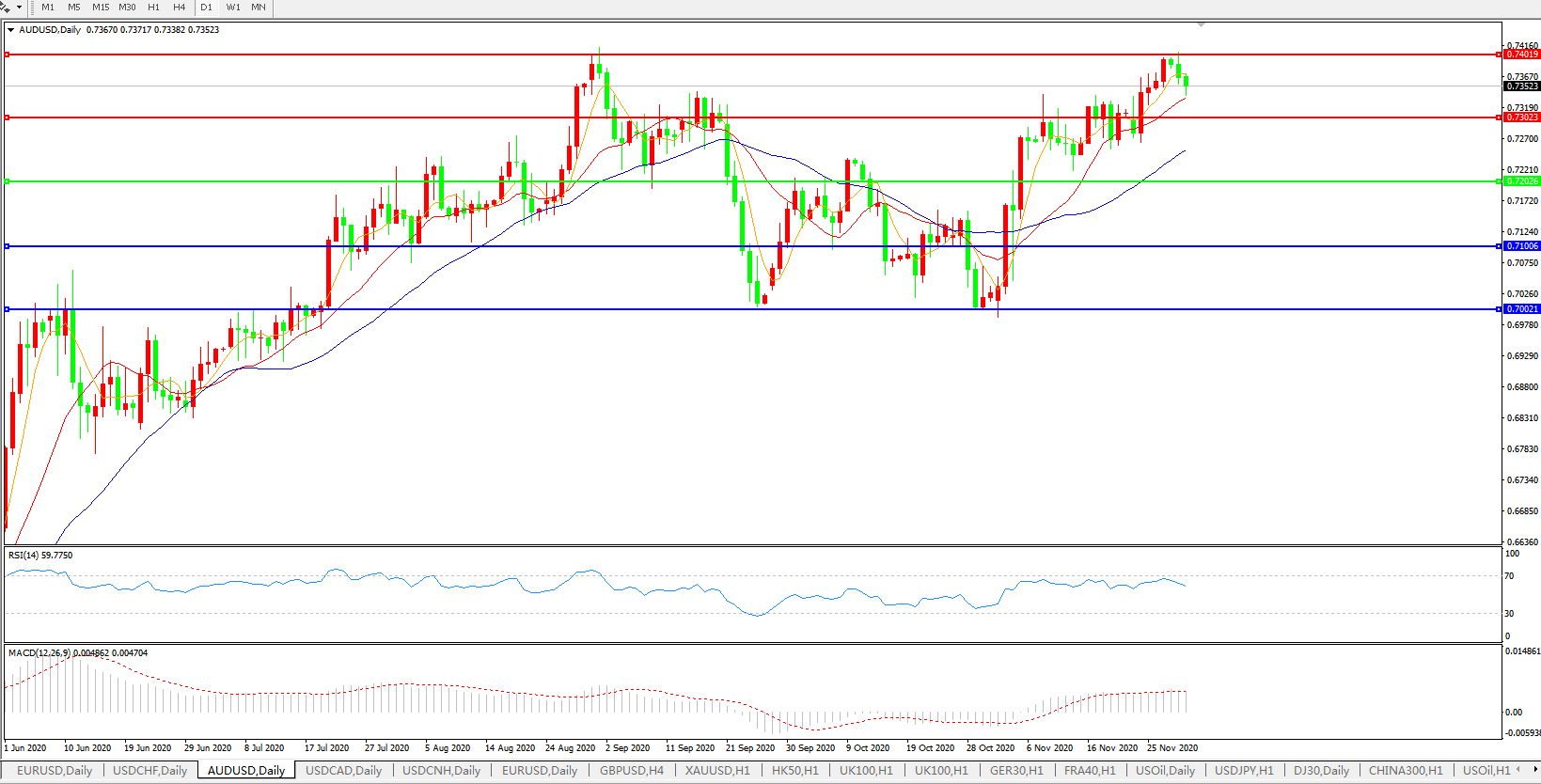 压制位:0.7300 0.7400