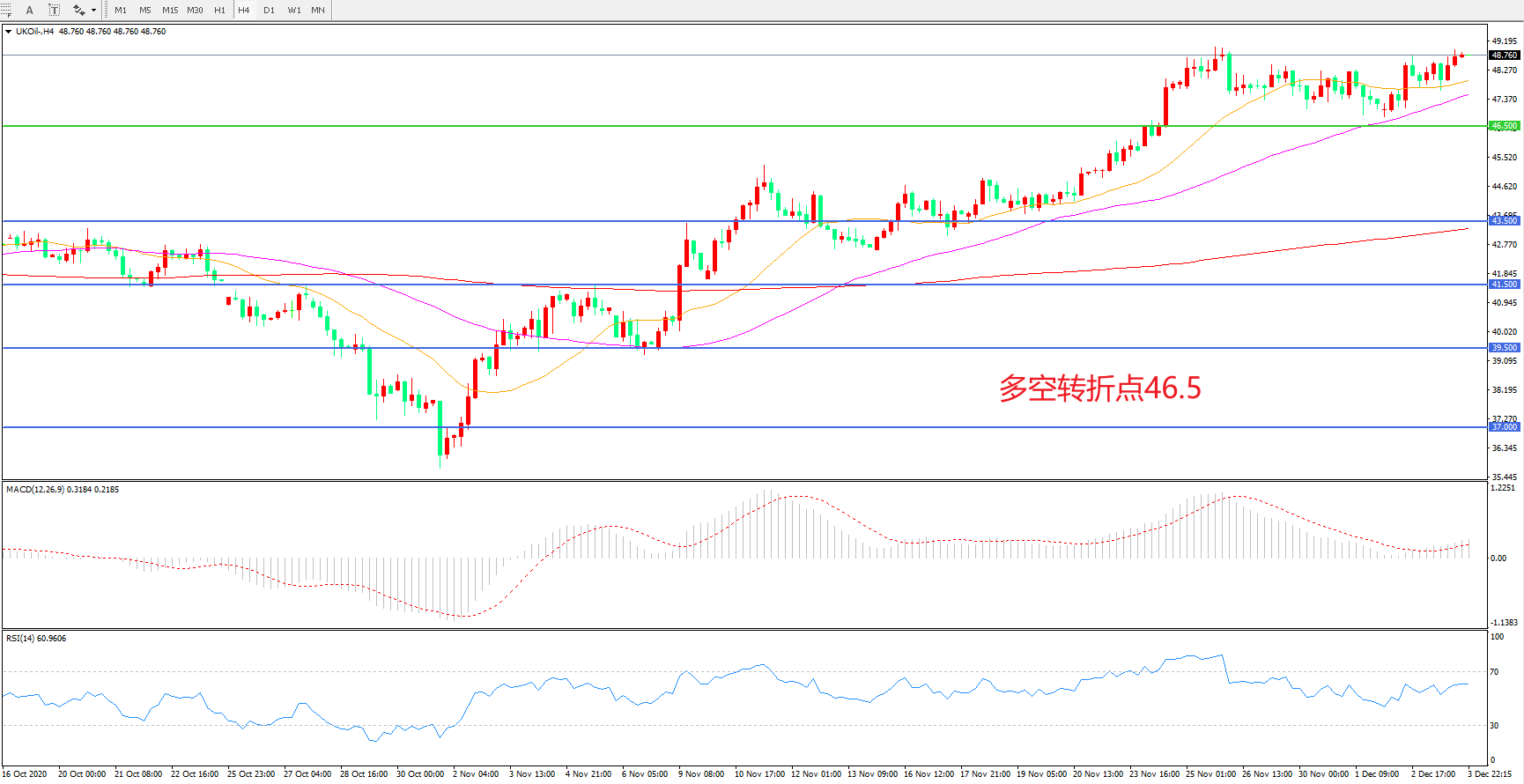 交易策略:  在46.50之上看涨,目标50.00      53.00