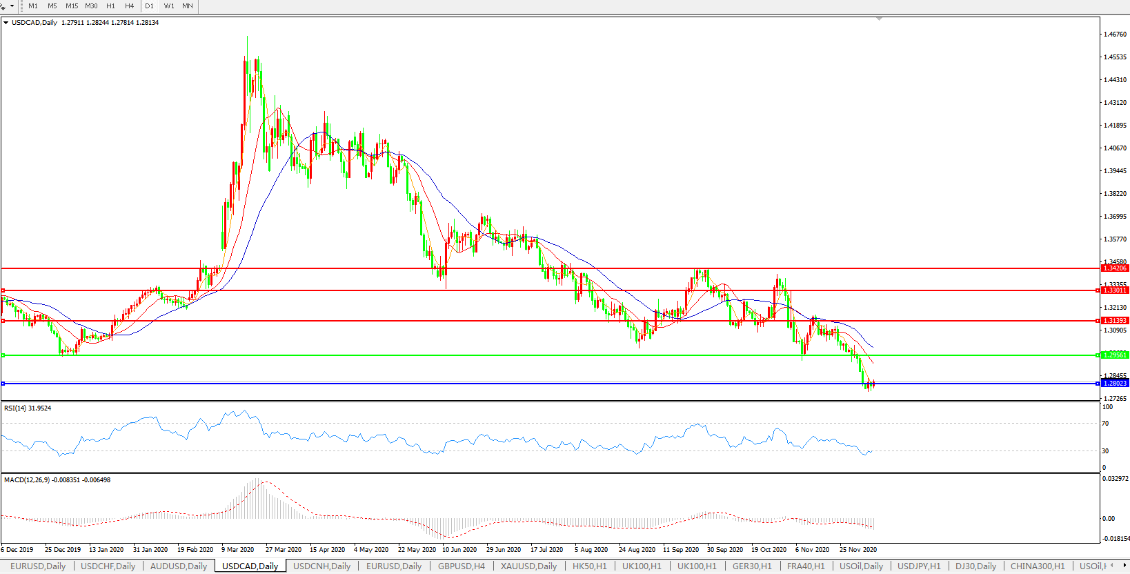美元兑加元USDCAD    日线图: