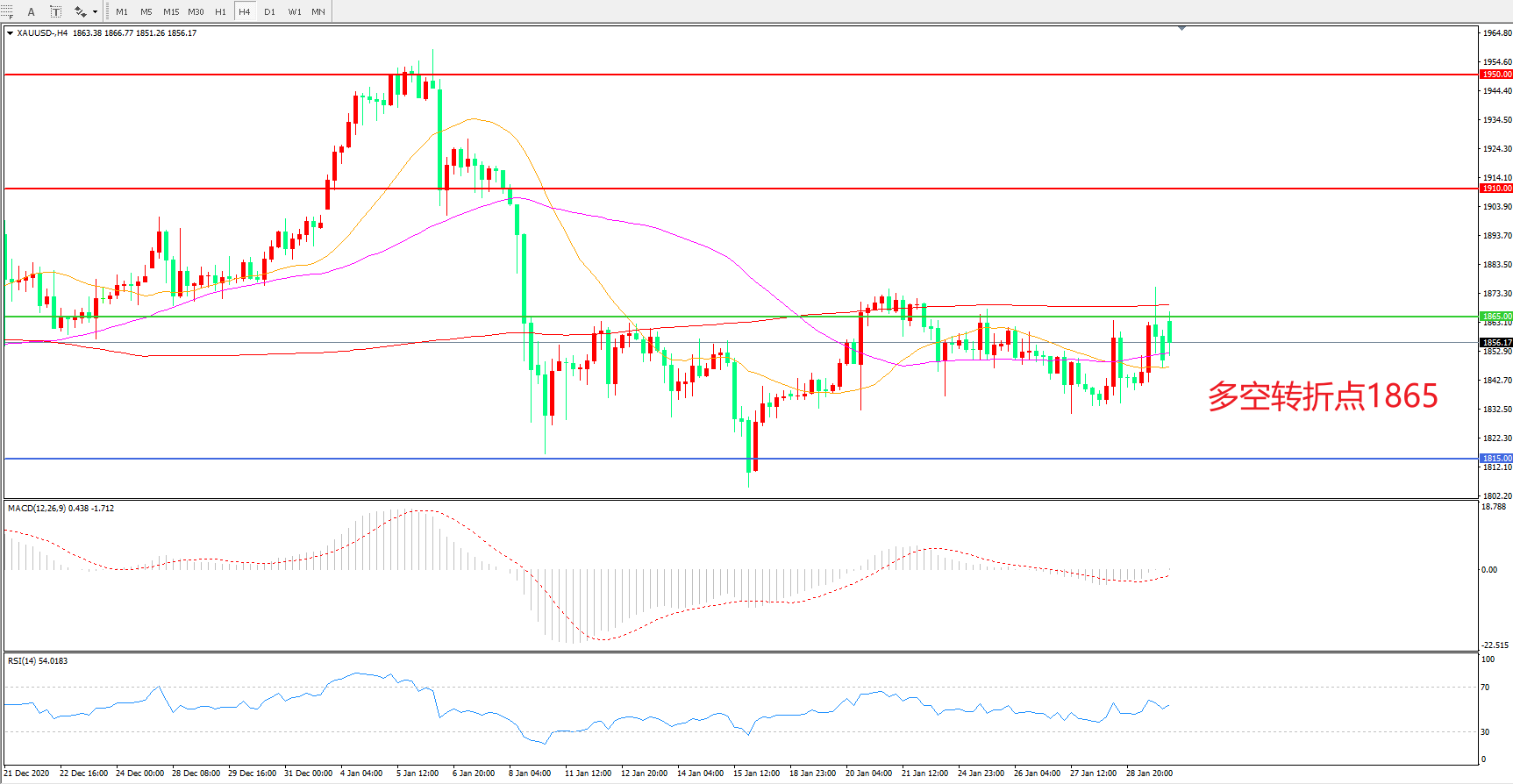 交易策略:在1865.00之下看跌,目标1815.00    1765.00