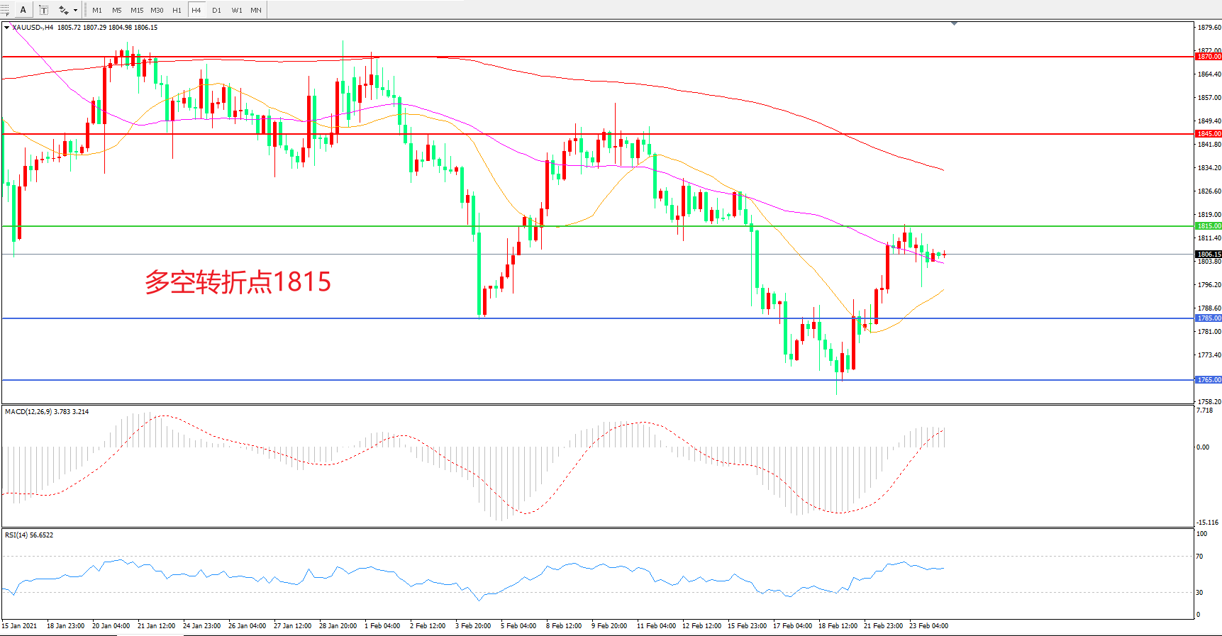 交易策略:在1815.00之下看跌,目标1785.00 1765.00