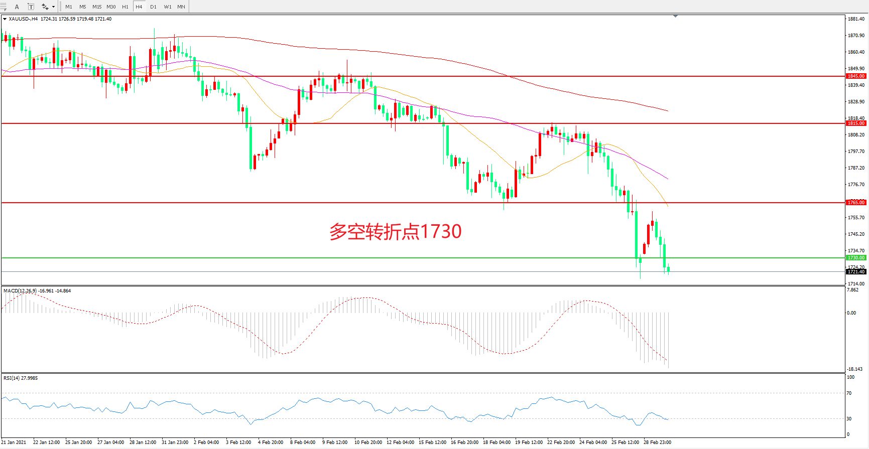 多空转折点:1730.00