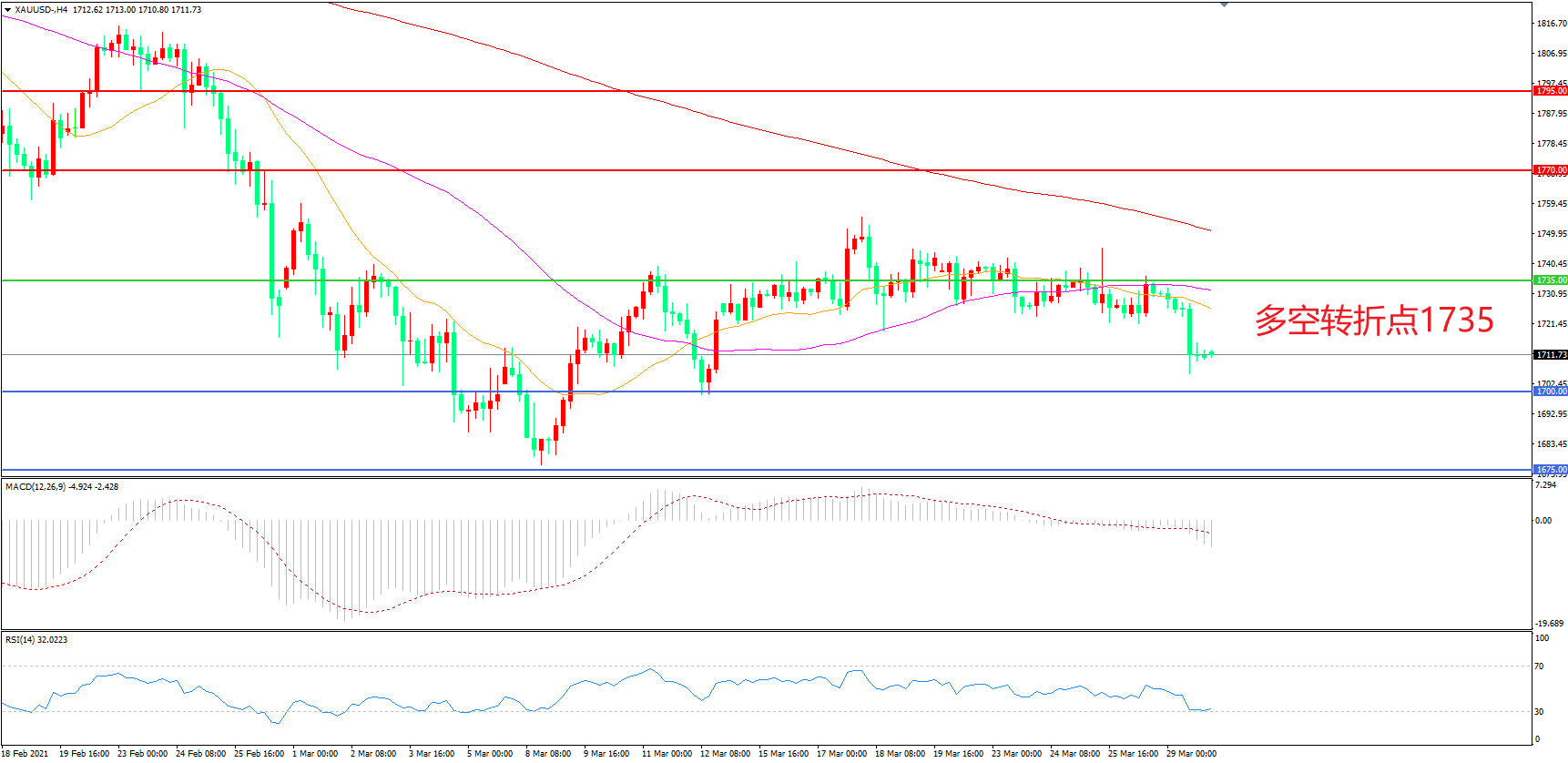 交易策略:在1735.00之下看跌,目标1700.00 1675.00
