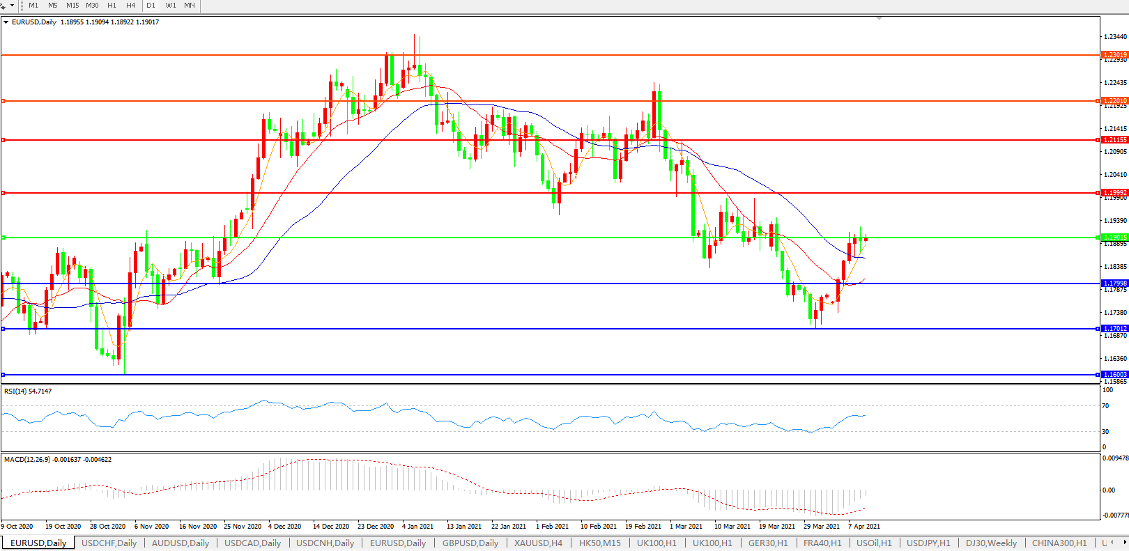 交易策略:1.1900上方看涨,目标1.2000、1.2100
