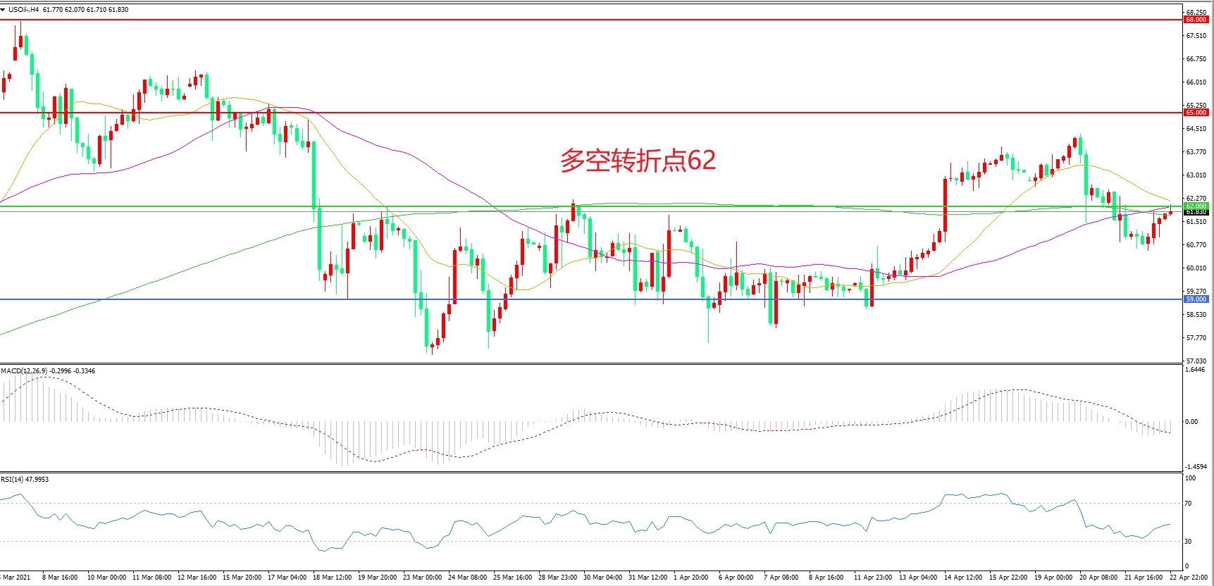 周四(4月22日),利比亚国家石油公司再次宣布Hariga港口因不可抗力将再次暂停出口,抵消了印度和日本新冠病例上升导致能源需求下降的预期,美国WTI原油小幅回暖,收报61.82美元/桶。OPEC+将在下周召开的技术性会议,多空双方或将再次就此进行博弈。