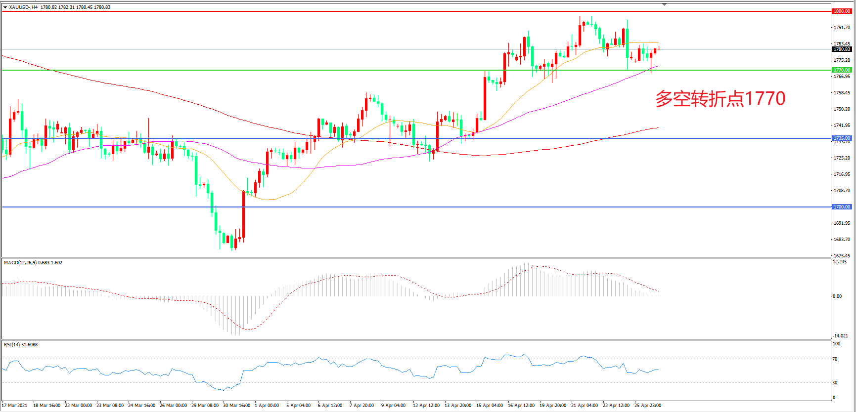 多空转折点:1770.00