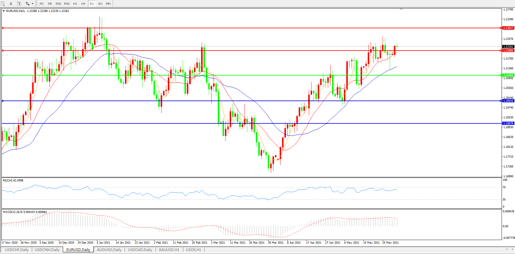 欧元兑美元EURUSD   日线图: