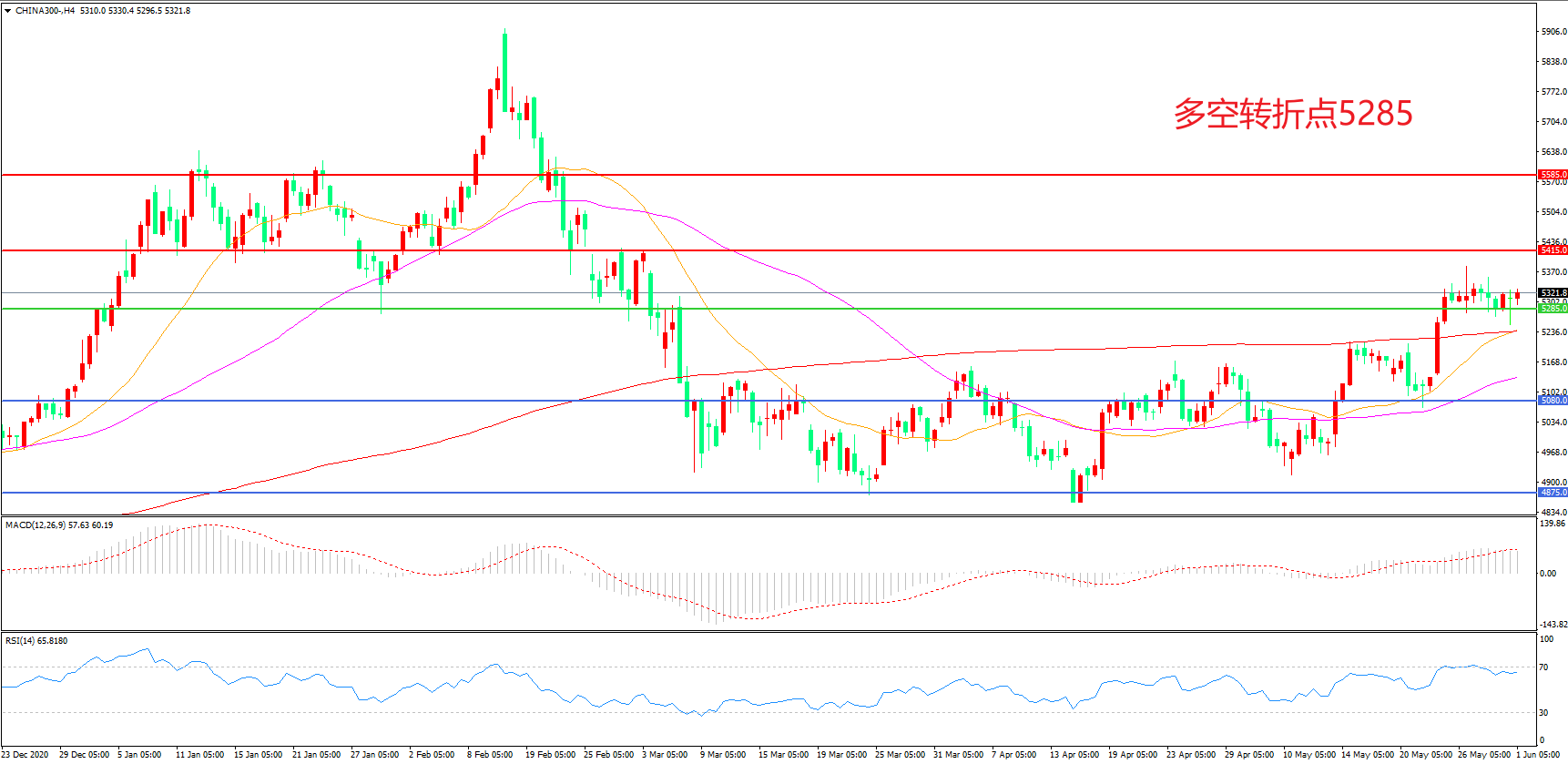 多空转折点:5285.00