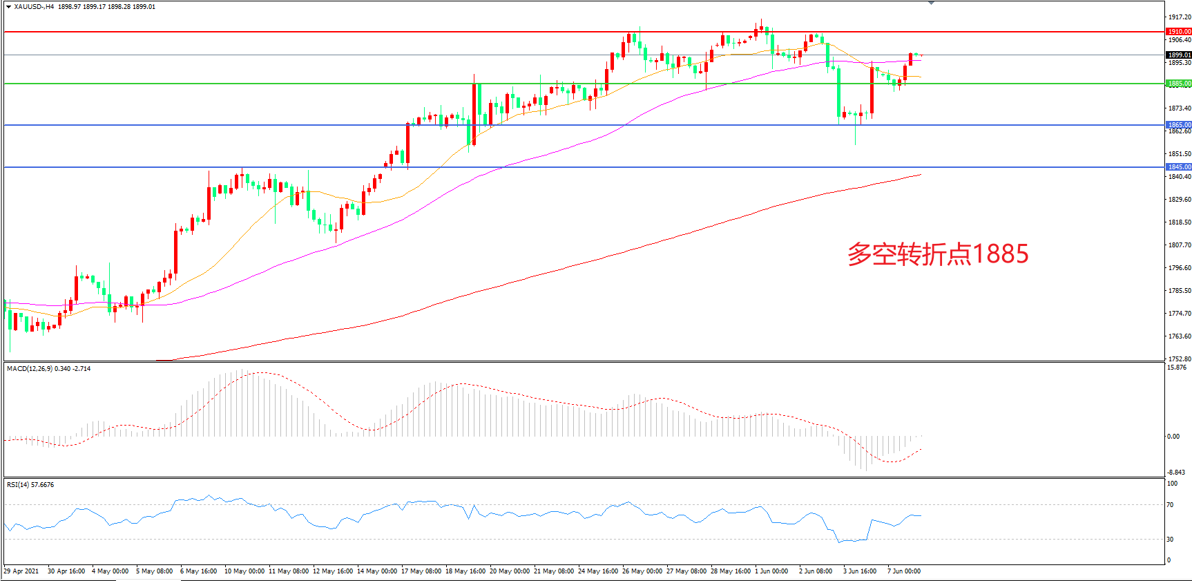 交易策略:在1885.00之上看涨,目标1910.00    1935.00