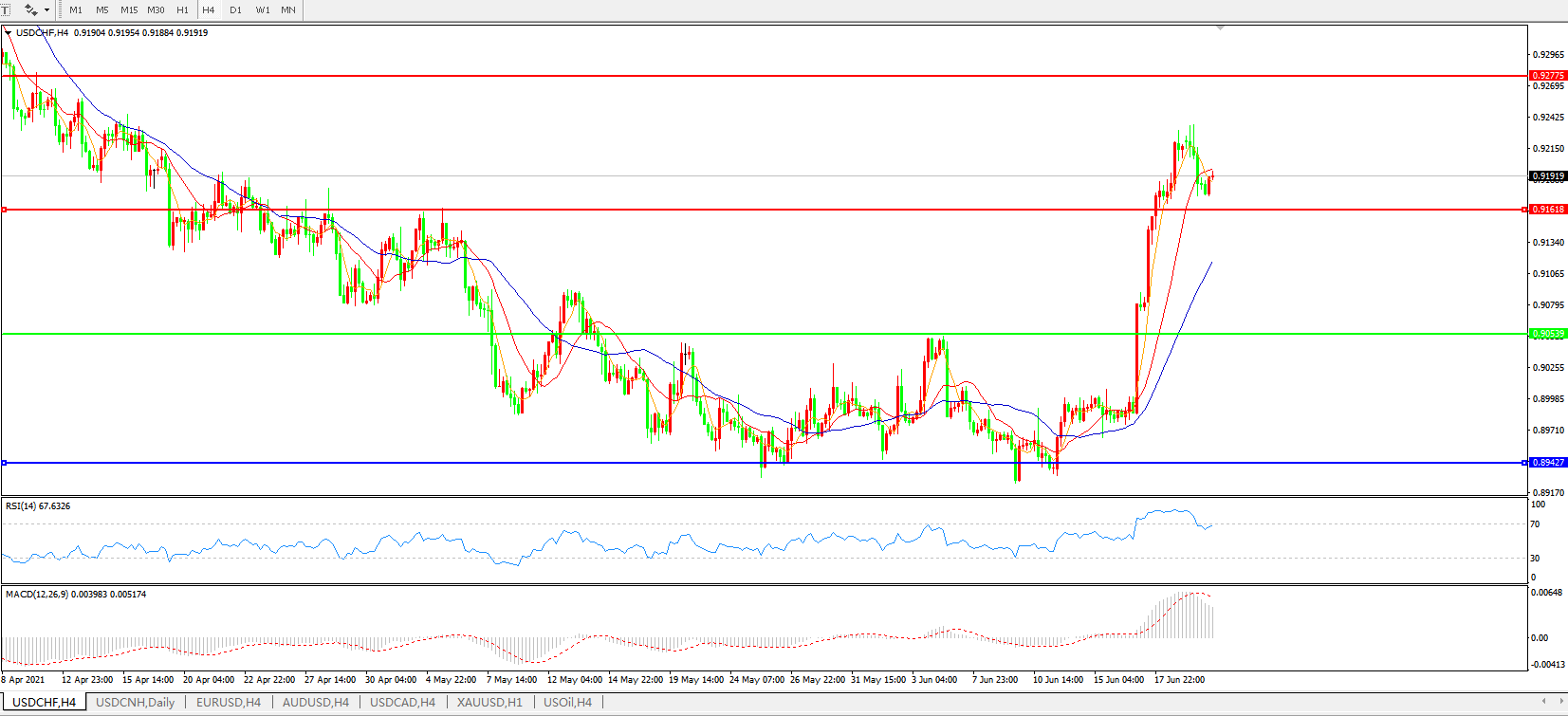 美元兑瑞郎USDCHF 4小时图: