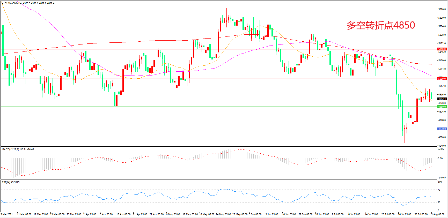 多空转折点:4850.00