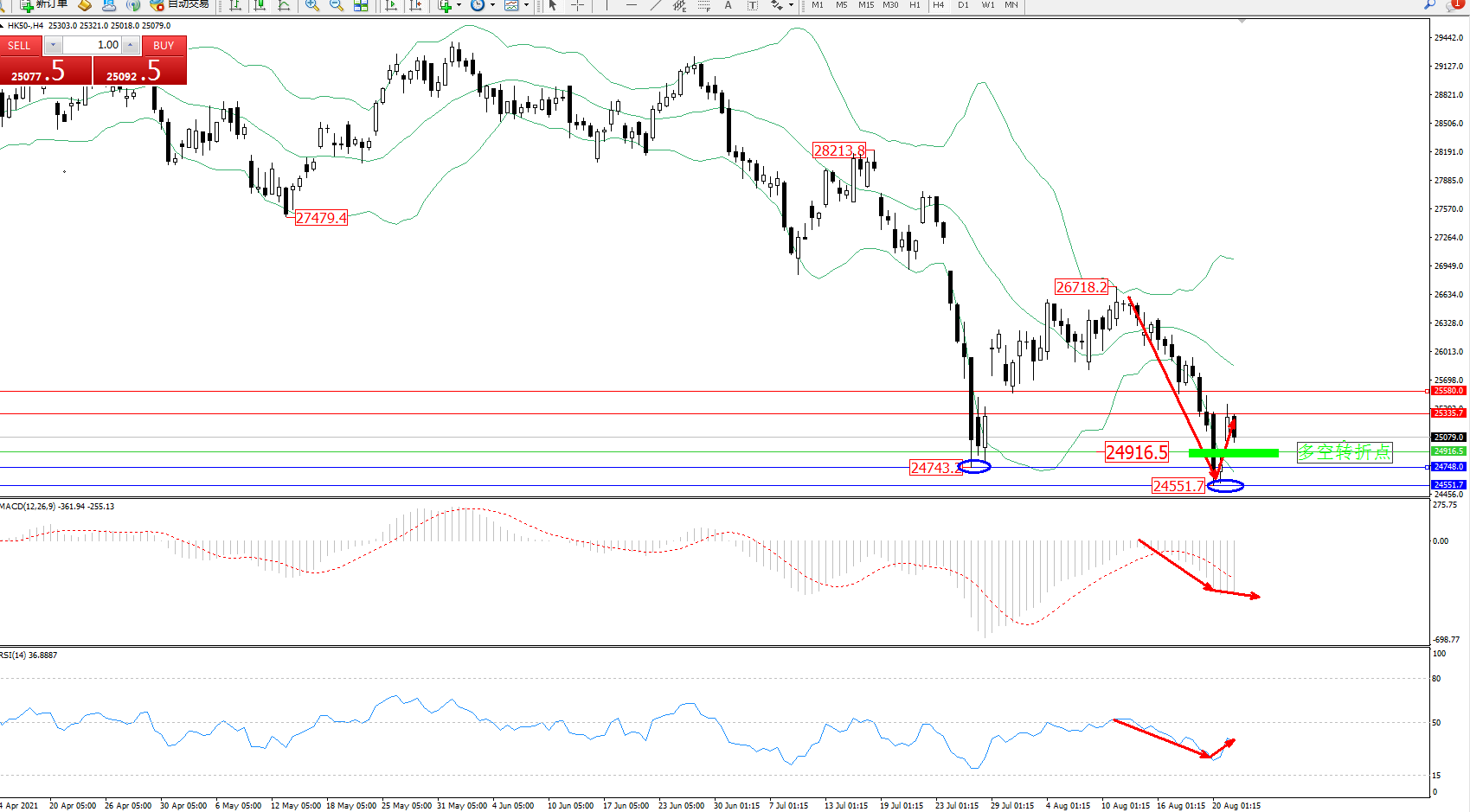 恒指HK50 ——4小时K线图显示: