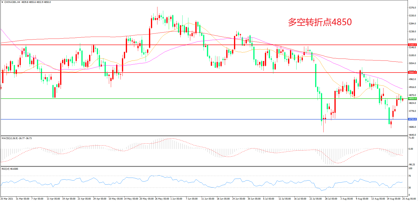 多空转折点:4850.00