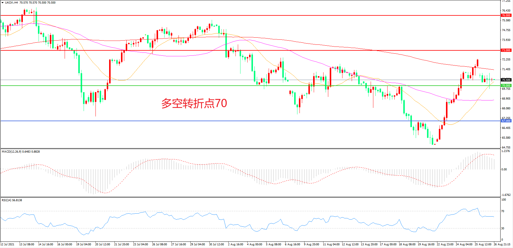 交易策略:在70.00之上看涨,目标73.00                76.00