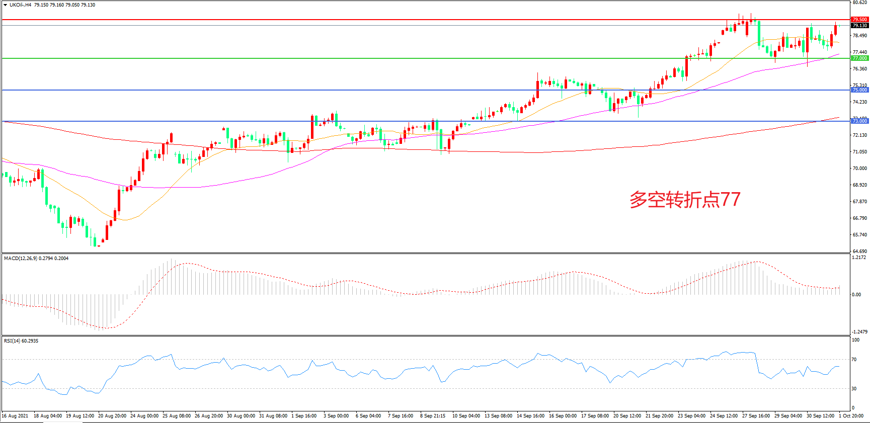 多空转折点:77.00