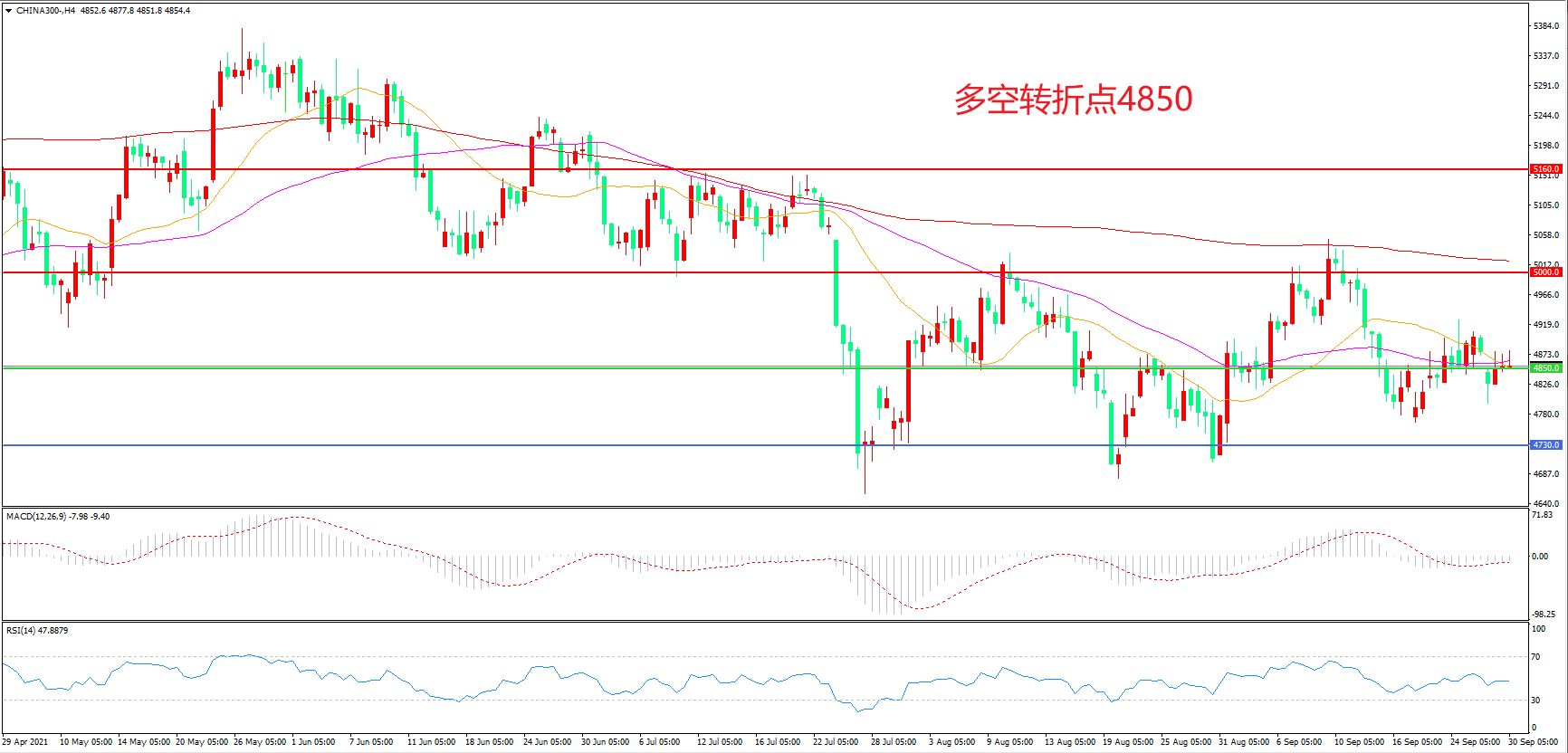 多空转折点:4850.00