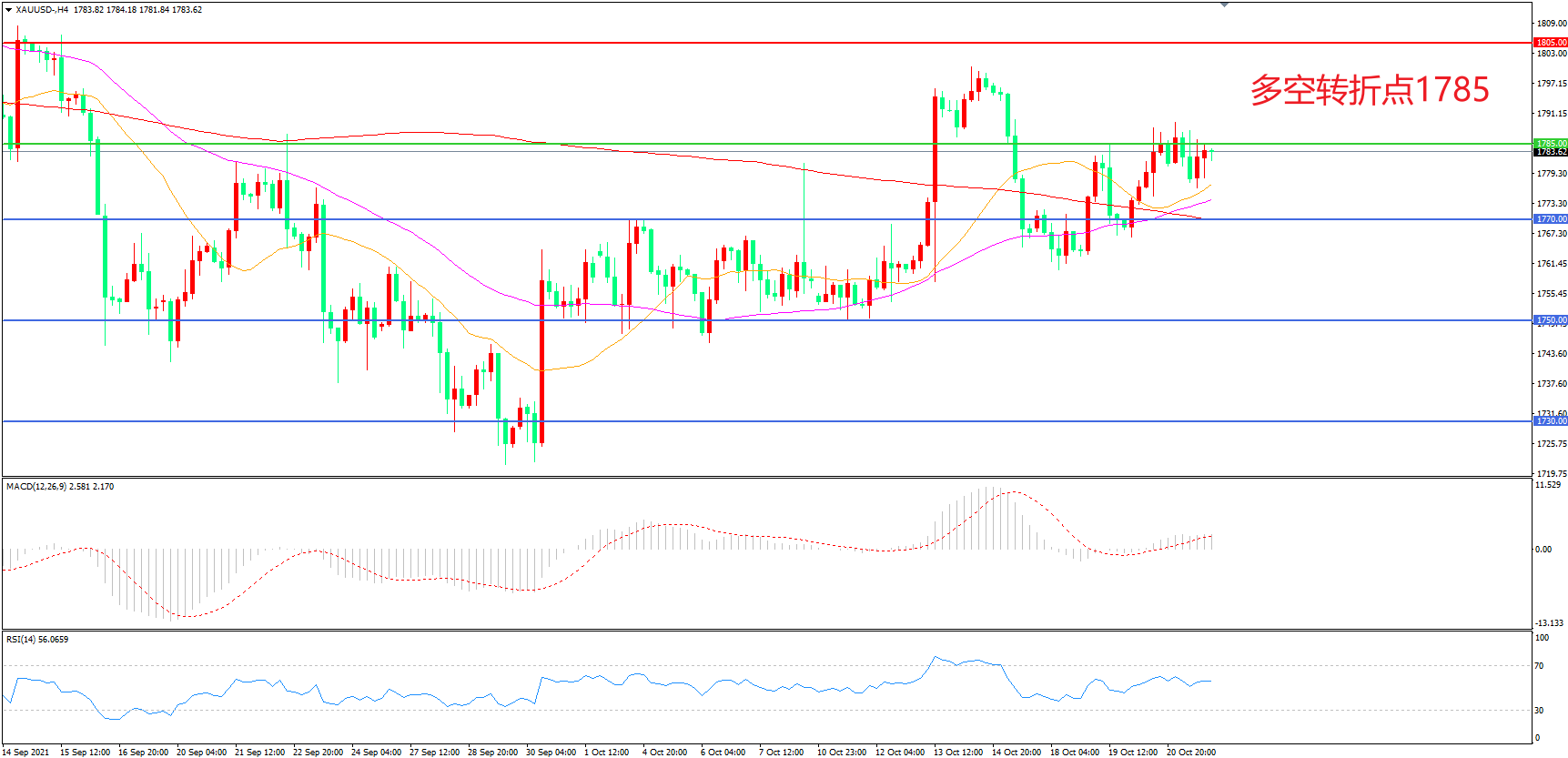 多空转折点:1785.00