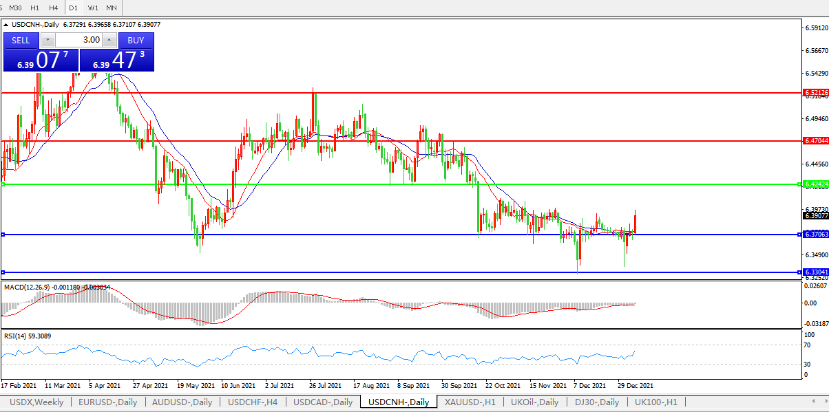 备选策略:在6.4240之上,看涨,目标价位为6.4700,然后为6.5210。