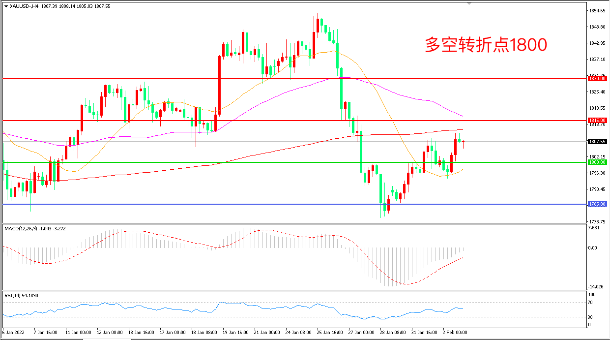 交易策略:在1800.00之上看涨,目标1815.00       1830.00