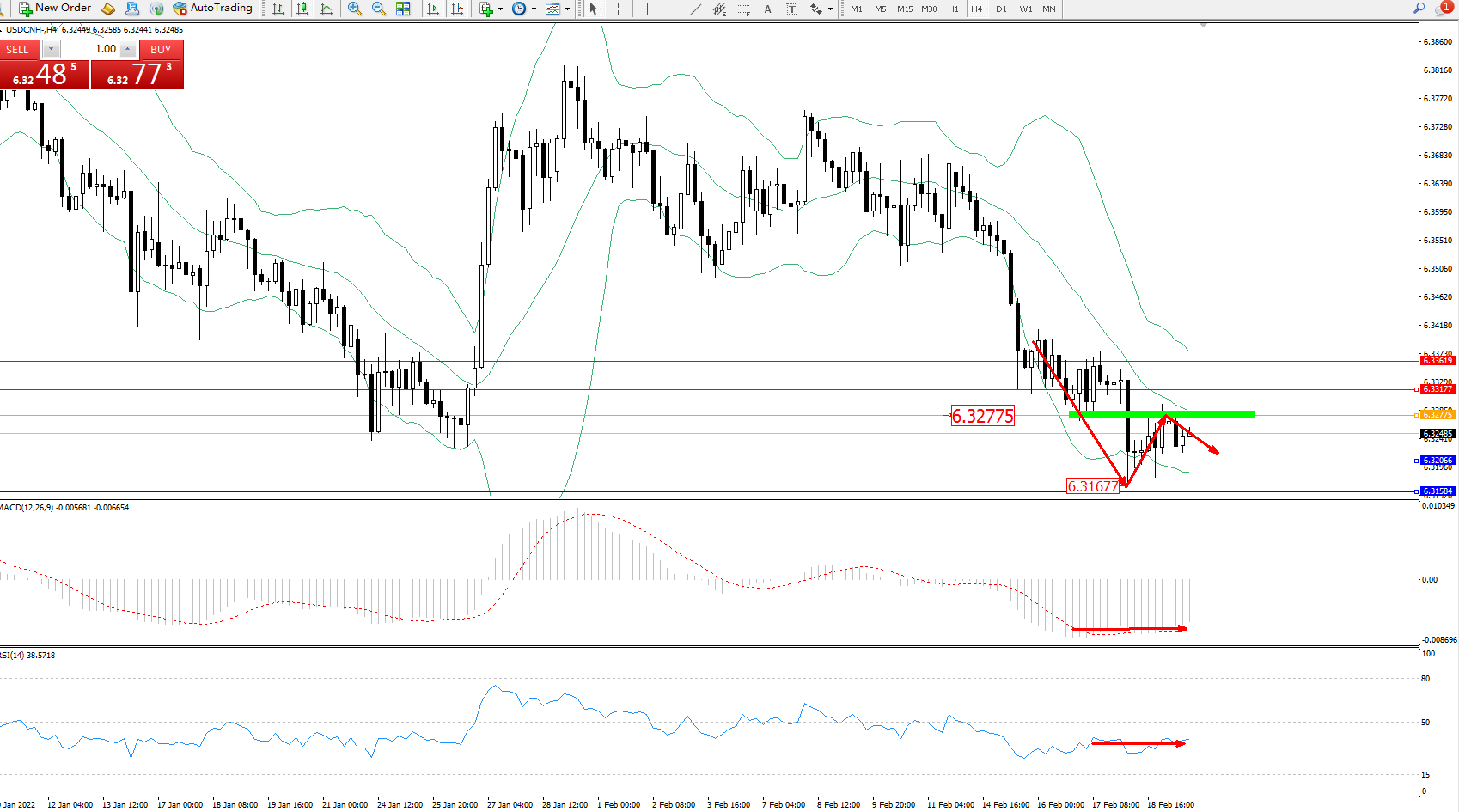 交易策略:6.32775下方看跌,目标6.32066、6.31584
