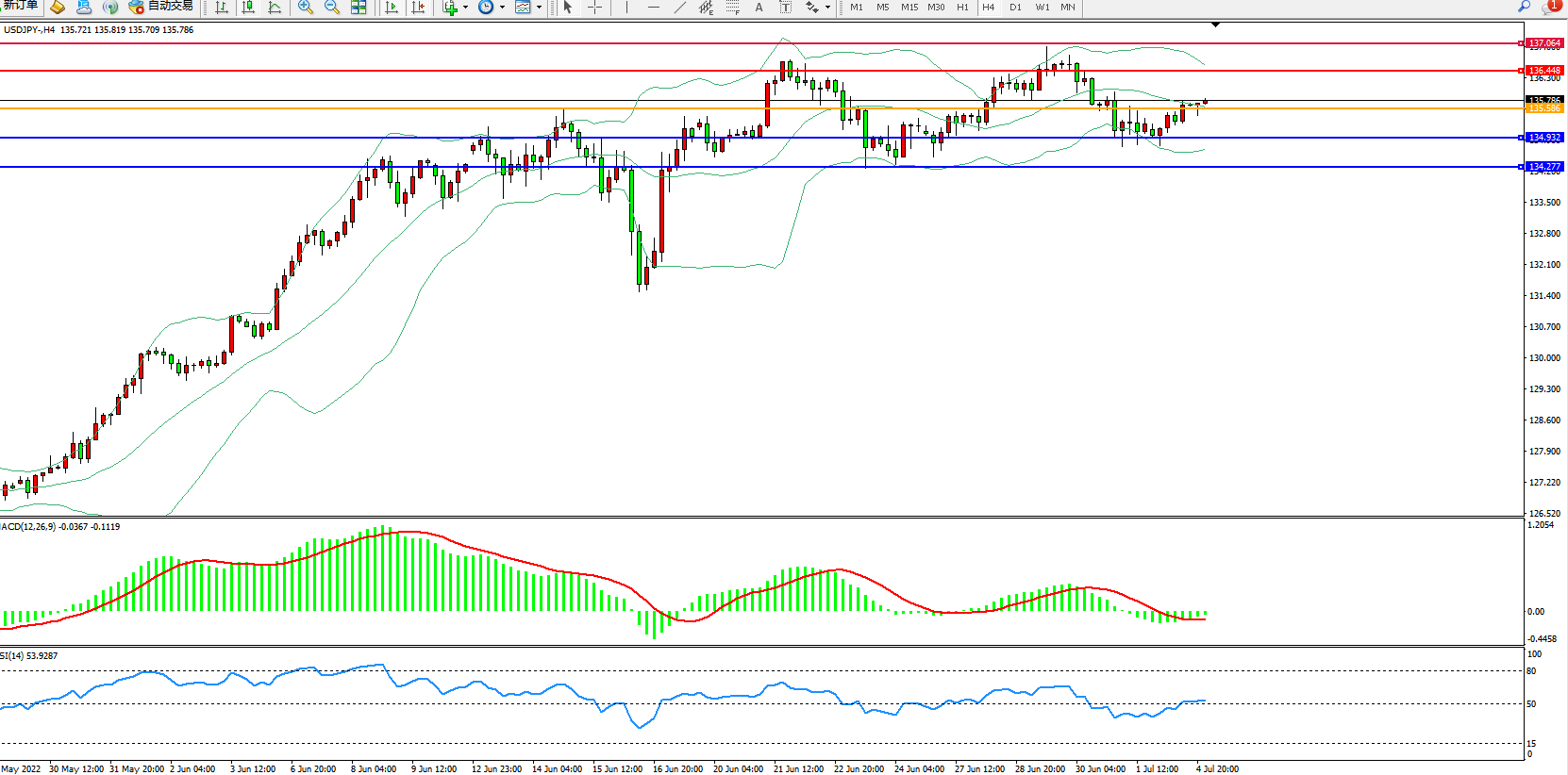 支撑位:134.932、134.277