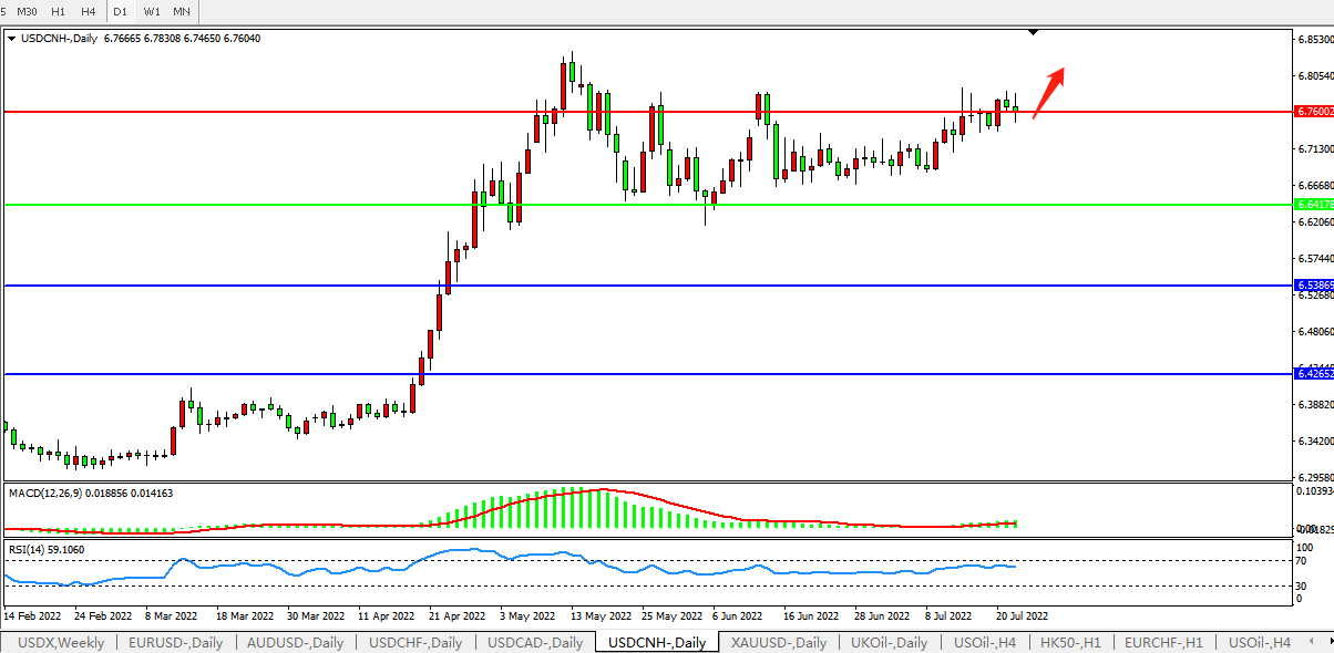 交易策略:在6.6416之上,看涨,目标价位为6.7600、6.8870