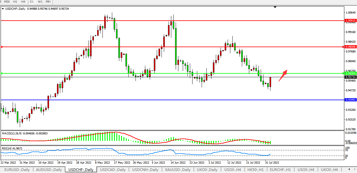 USDCHF:短线止跌,料将小幅反弹