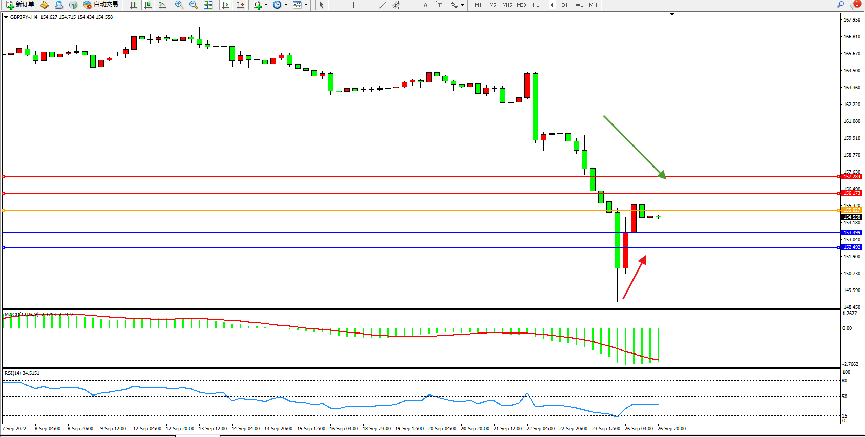 交易策略:155.027下方看跌,目标153.499、152.492