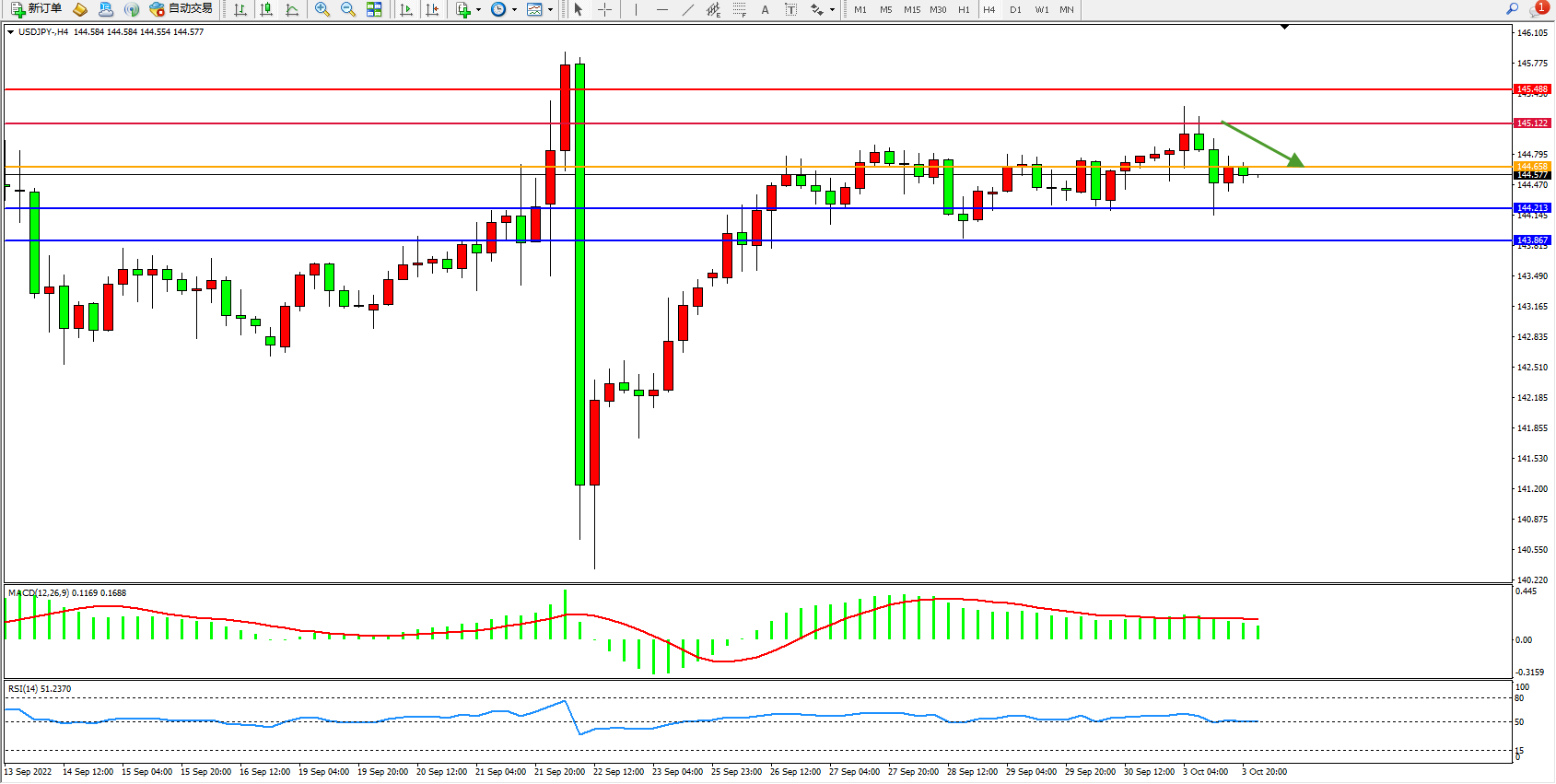 美元兑日圆维持144.577附近震荡,日本首相岸田文雄:将从疲软的日圆中寻求利益,并将其返还给公众。将利用弱势的日圆强化经济结构。入境游客的消费目标是5万亿日元。