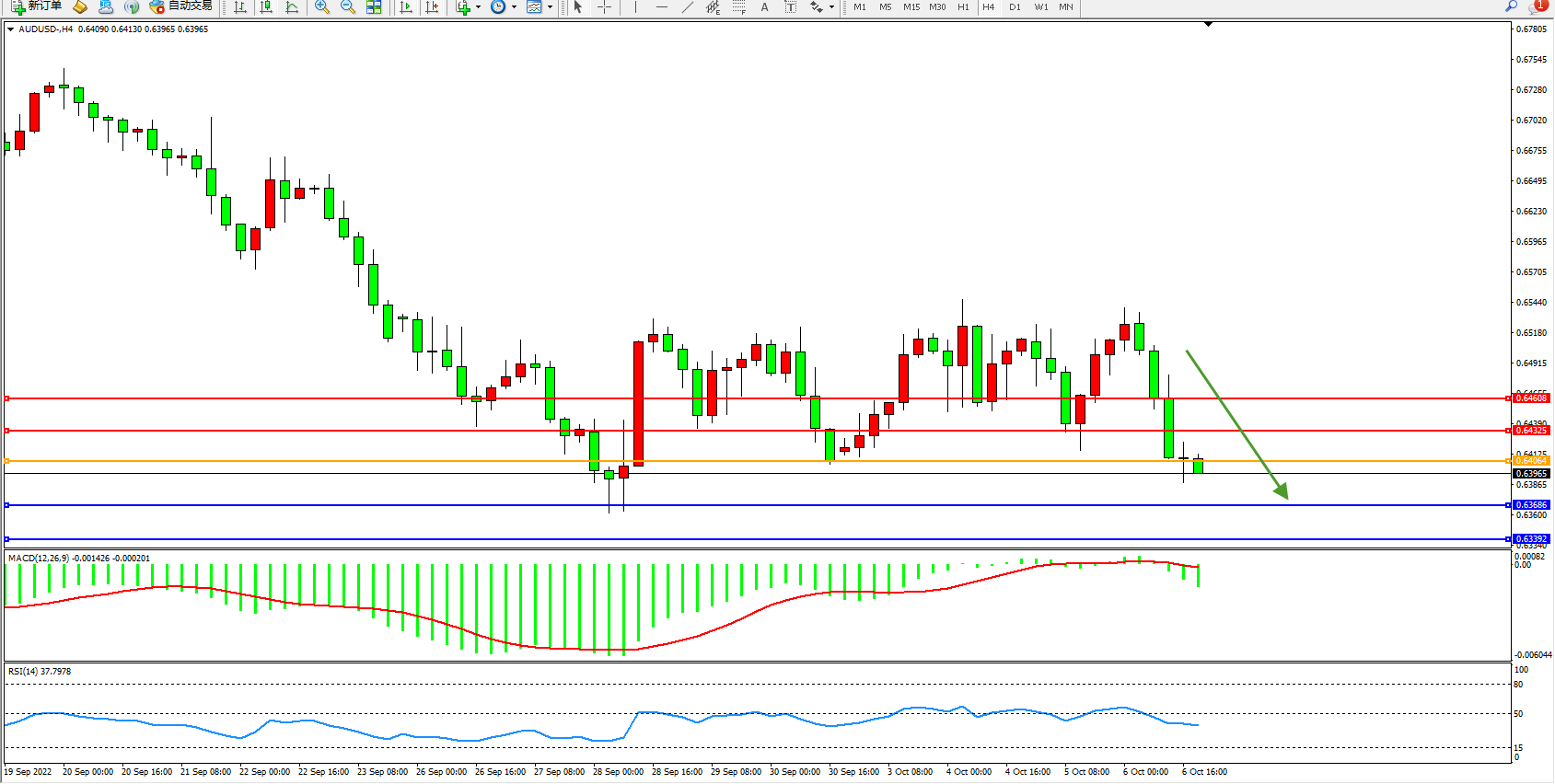 澳元美元AUDUSD——4小时K线图显示: