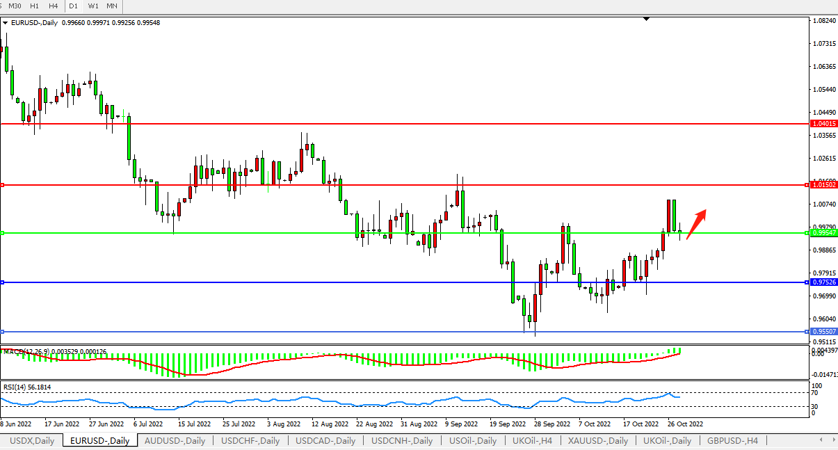 交易策略:0.9950上方看涨,目标1.0150、1.0400