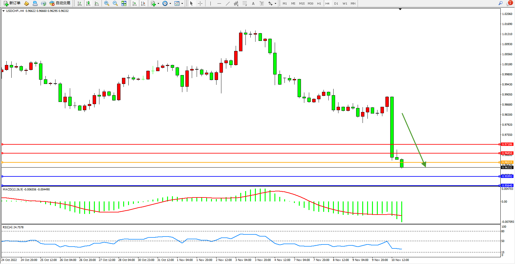 美元兑瑞郎维持0.96333附近震荡,瑞士央行官员Maechler:瑞士的通胀率仍然很高。利率互换市场下调美联储12月加息75个基点的预期。