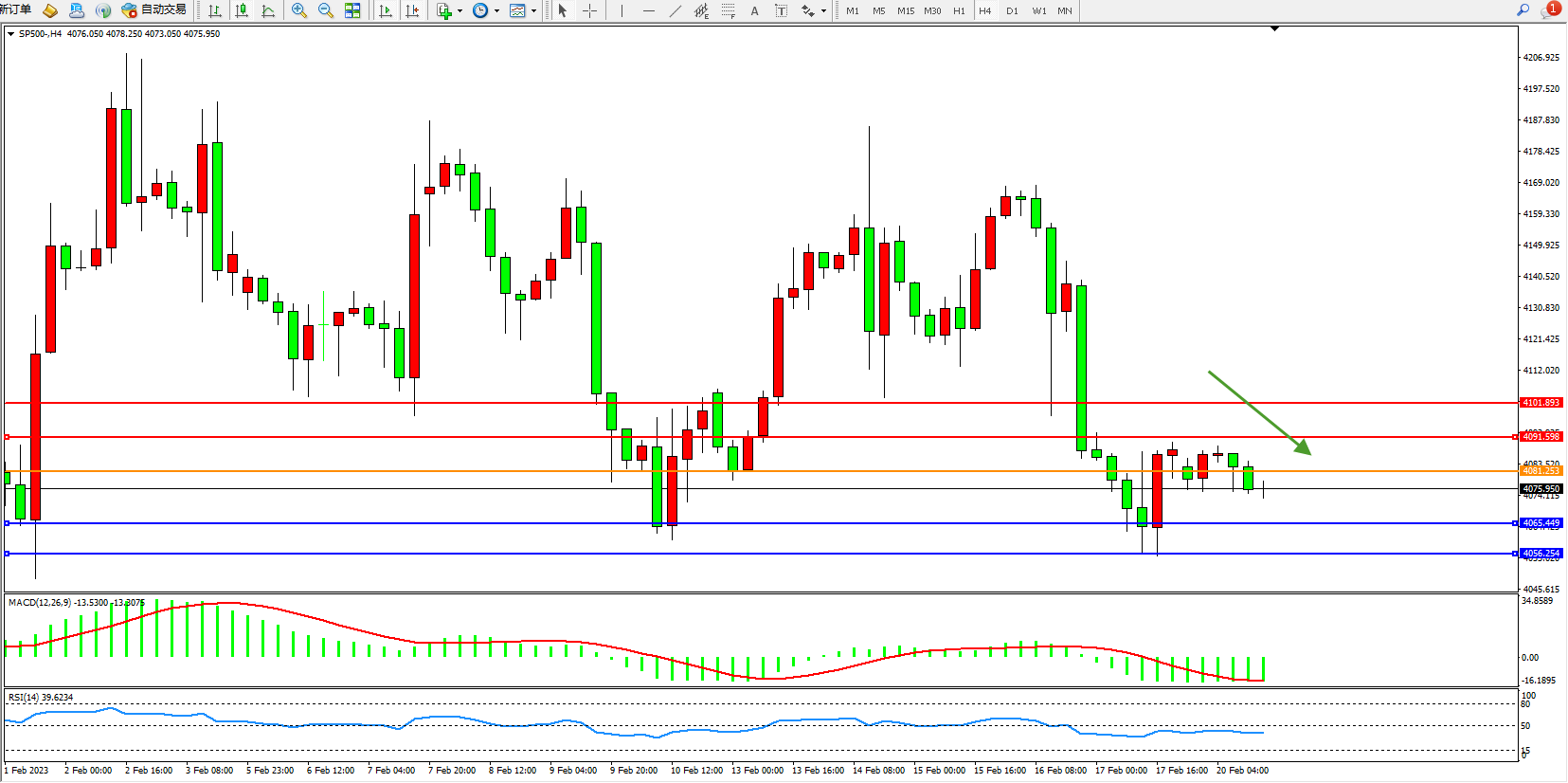 标普SP500——4小时K线图显示: