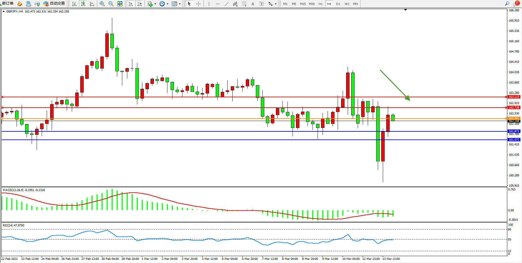 交易策略:162.341下方看跌,目标161.873 161.572