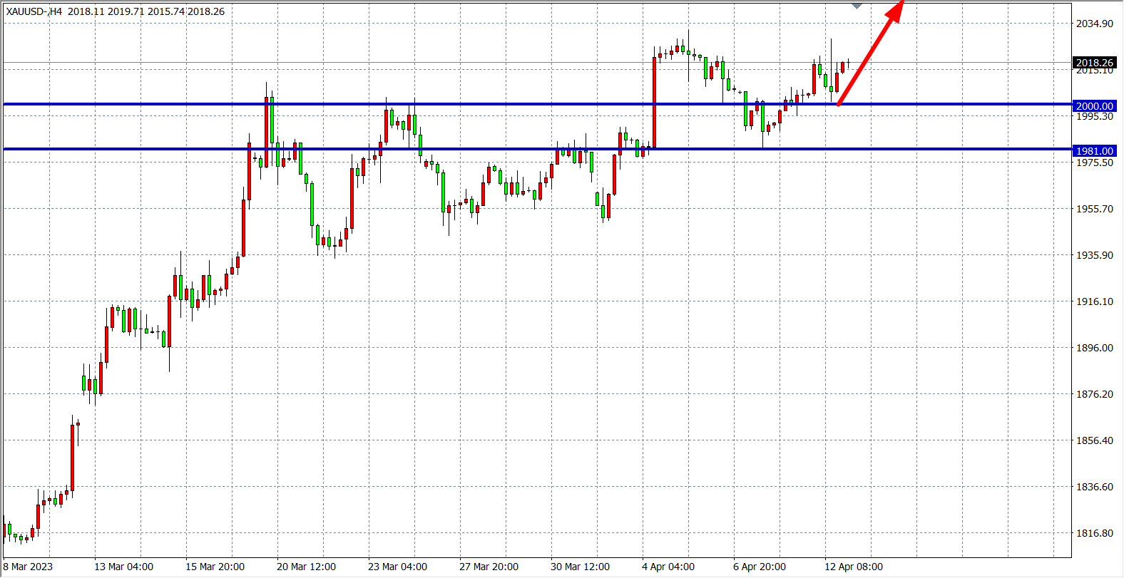 现货黄金XAUUSD 四小时图