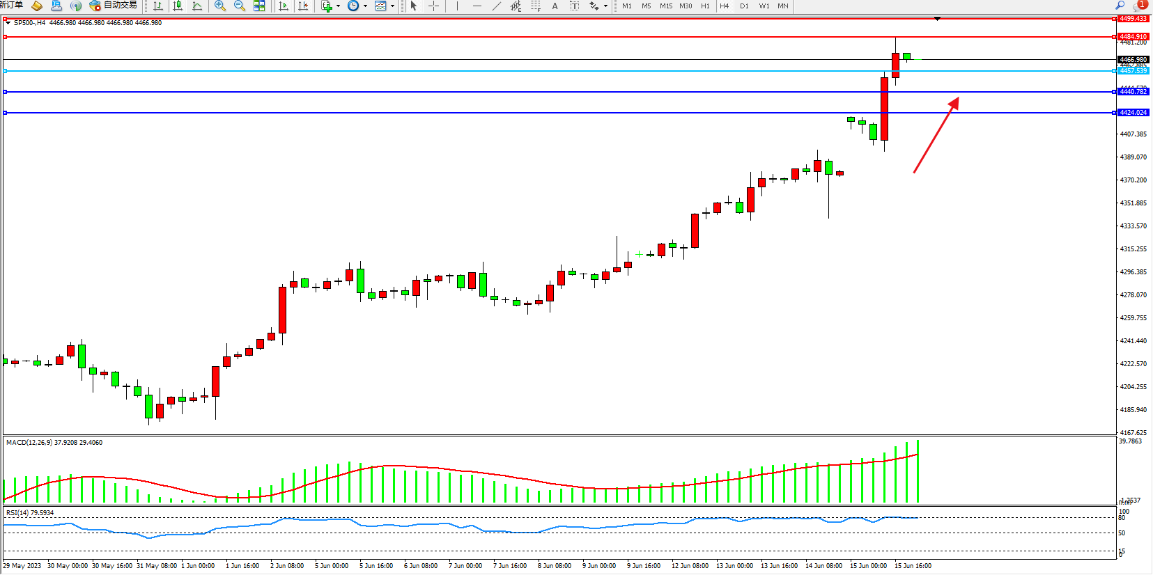 标普SP500——4小时K线图显示: