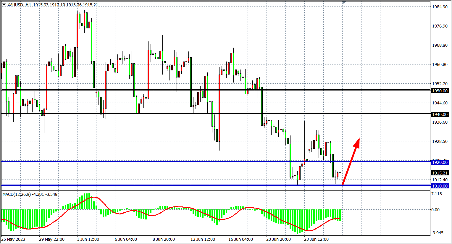 交易策略:1910上方看涨,目标 1940 1950