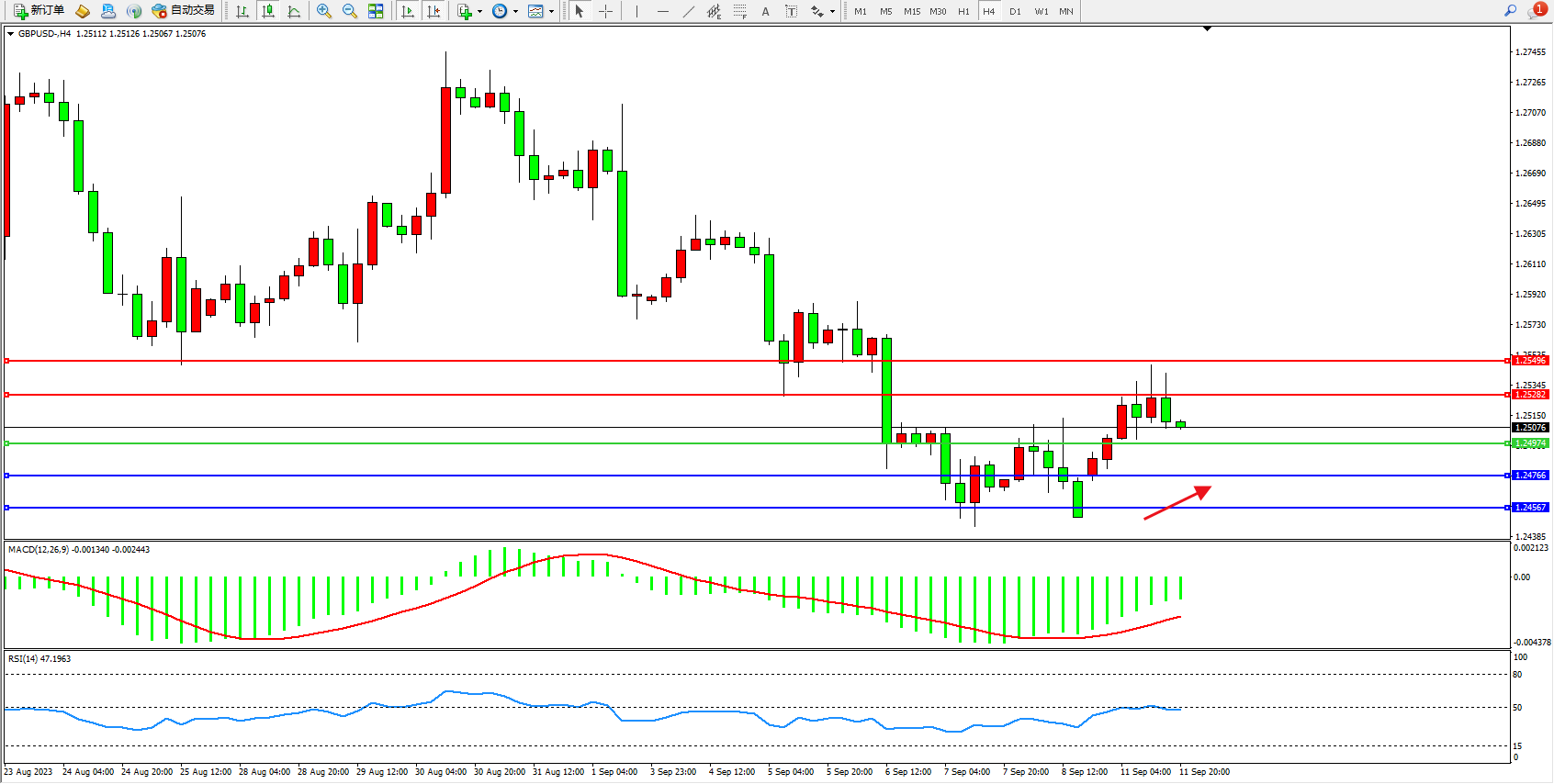 英镑兑美元维持1.25076附近震荡,英镑之前引以为的利率差优势似乎已渐渐消散。市场上关注的焦点似乎更在意各国在当前高利率成本环境下的经济发展状况。因此,近期美元维持强势,也是逼使英镑退下阵来而出现持续的下滑走势趋向。