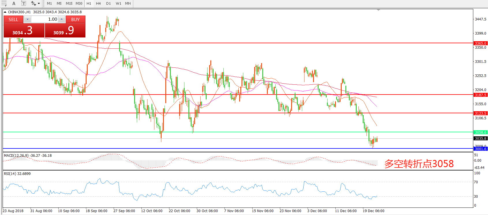 交易策略:在3058.00之下看跌,目标3000.00 2975.00