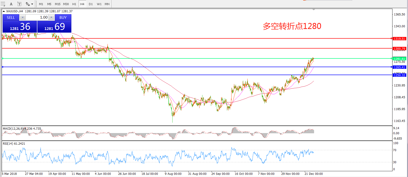 多空转折点:1280.00