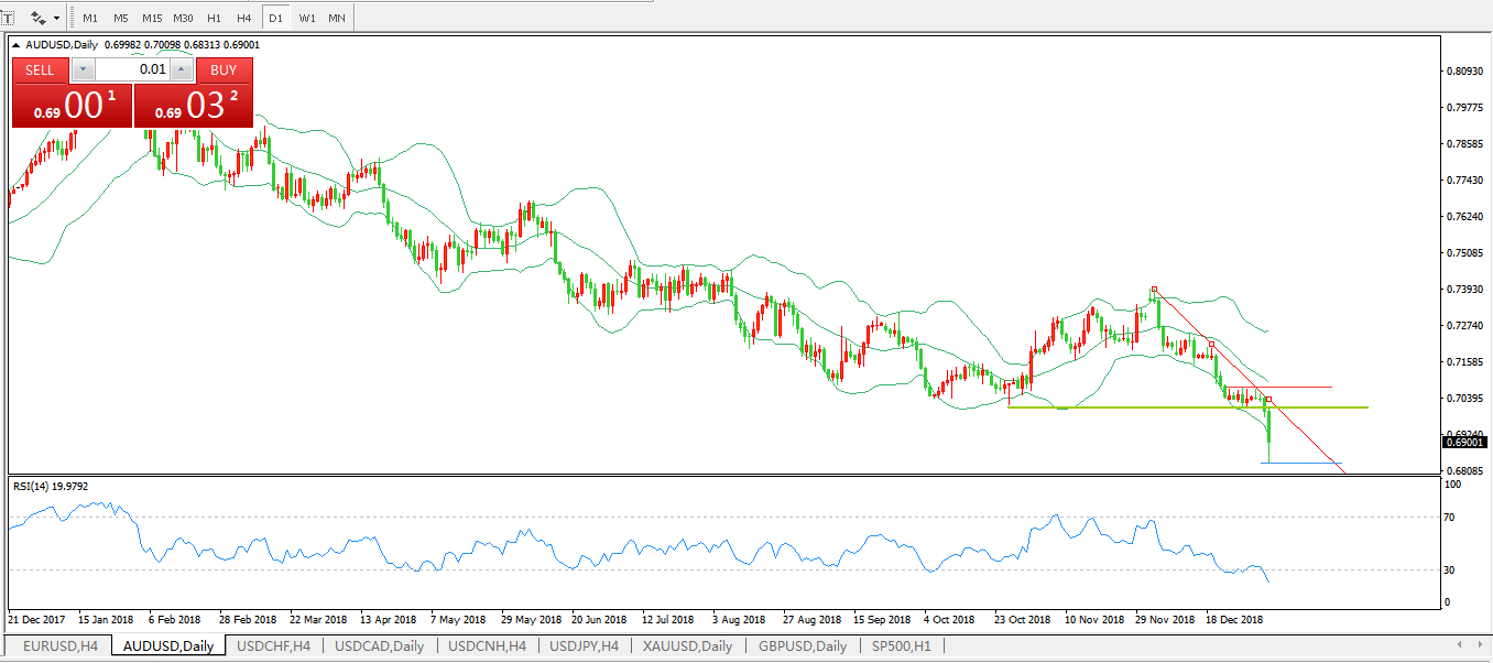 交易策略:在0.7015之下,看跌,目标价位为0.6920,然后为0.6833
