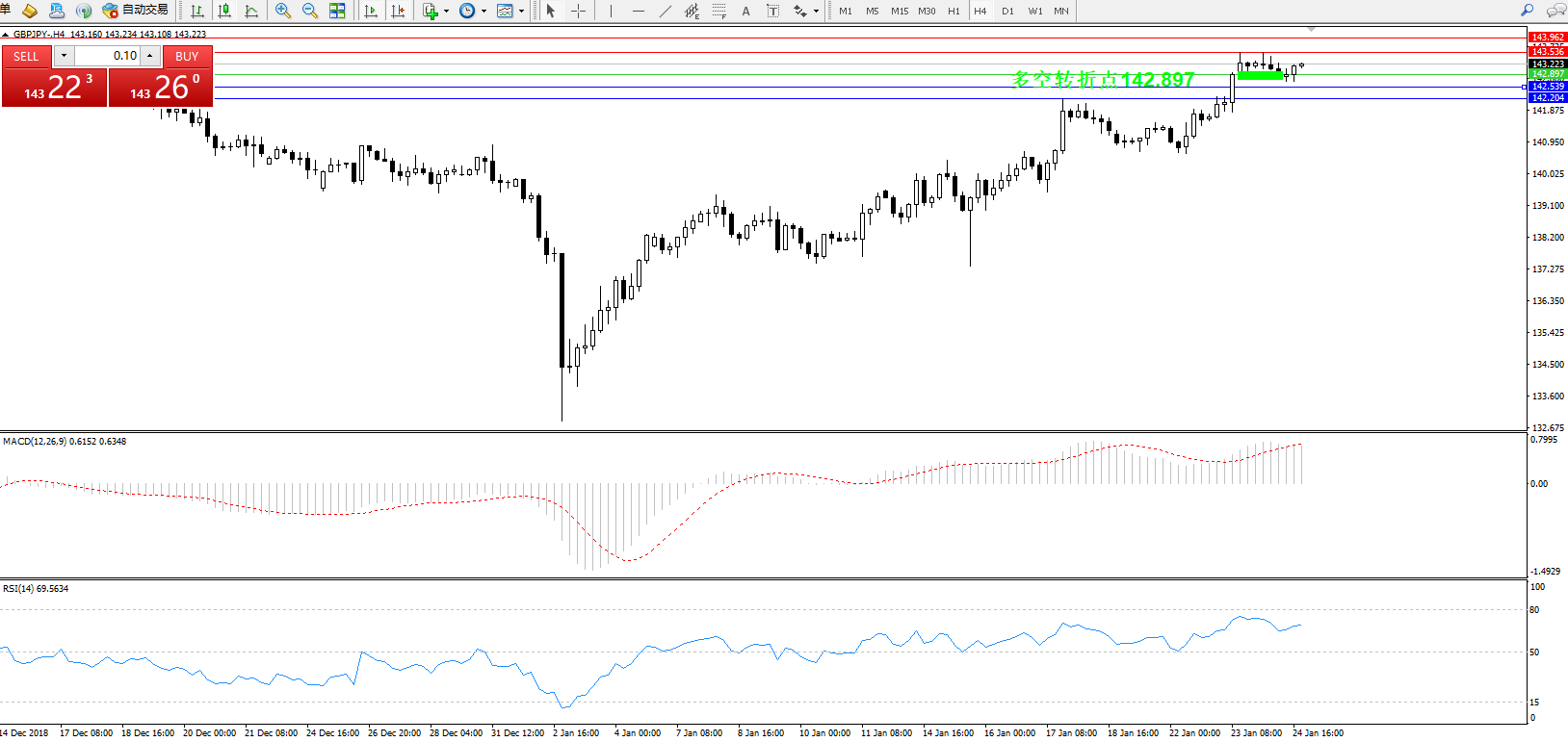 交易策略:142.897上方看涨,目标143.536、143.962