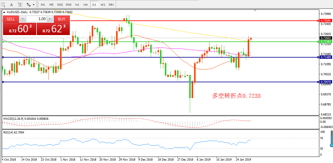交易策略:在0.7238之上看涨,目标0.7359. 0.7464