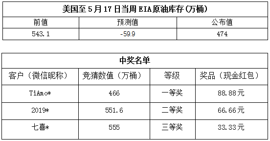 2019年5月第3期“EIA大竞猜活动的中奖结果已出,获奖信息如下:
