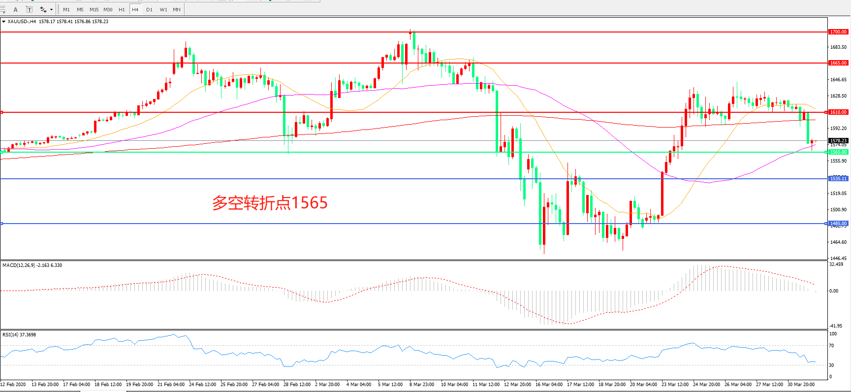 多空转折点:1565.00