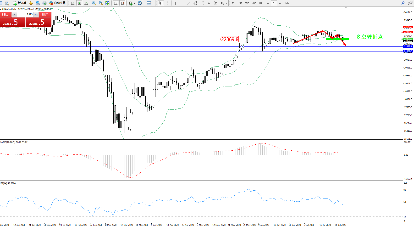日经225指数7月30日(周四)收盘下跌63.61点,跌幅0.28%,报22333.50点。日本央行今日购买了15亿日元的日本地产信托基金(J-REITs),日本央行目前没有计划发行数字货币。日本央行需要为央行数字货币(CBDC)做准备。日本政府预计到2021财年日本实际GDP增速约为3.4%。日本政府预计2020财年经济萎缩4.5%。日本东京都知事小池百合子就病毒在东京传播发出特别警告。要警惕新冠肺炎感染情况。病毒形势要求我们立即采取行动。要求企业完全停工是不现实的。将对酒吧和卡拉OK场馆限制营业时间。对新冠肺炎病例爆炸性增加表示担忧。酒吧和卡拉OK场所的营业时间应限制在早上5点到晚上10点之间。希望人们避免集体外出吃饭。病毒在施工场所,工作场所和就餐中传播。唯一的选项是加大病毒检测力度。日本单日新增确诊病例连续第二天超过1000例。如果疫情恶化,必须考虑宣布紧急状态。希望修改关于企业关闭和赔偿的法律。
